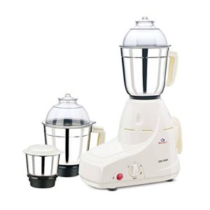- Mixer Grinder comes with 3 stainless steel jars: a liquidizing jar, a grinding jar, and a chutney jar