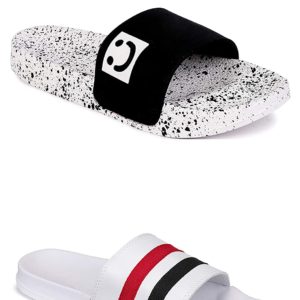 - QUANTITY: (2 Pairs of Men Flip Flops slippers)- 1 Pair- Smiley Flip flops , 2nd Pair- Red & Black strip Flip flops
