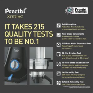 5. Includes Mixer Grinder, 1 x Plastic blender jar 1500ml, fruit filter, 1 x Wet grinding jar, 1500 ml, 1 x Dry grinding jar, 1000 ml, 1 x Chutney grinding jar, 400 ml, PoundingBlade, Spatula