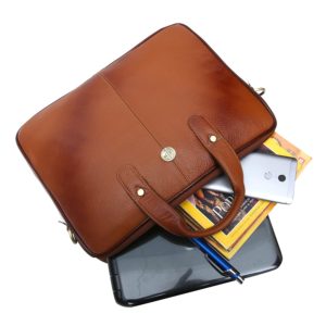 It keeps all your documents and electronics safe with the secure compartments and protects your valuables from knocks, bumps or weather. It has quality Antique brass finished accessories further enhance the rugged styling and durable nature of this laptop bag.