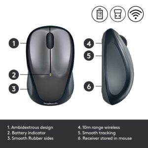 Logitech M235 Wireless Mouse for Windows and Mac with 2.4 GHz Wireless Technology-Black/Grey
