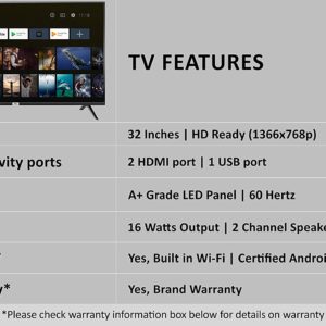 - Connectivity: 2 HDMI ports to connect set top box, Blu Ray players, gaming console | 1 USB ports to connect hard drives and other USB devices